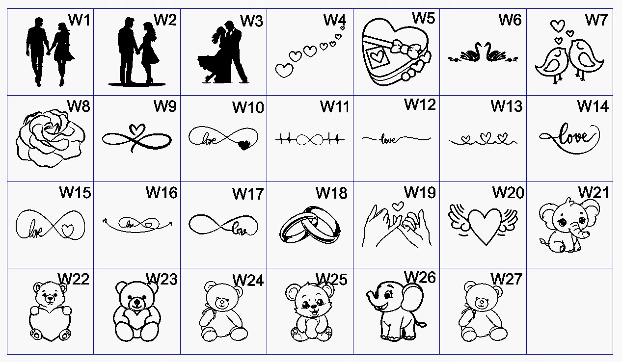 W przypadku braku jakiejkolwiek informacji kłódka zostanie wysłana bez graweru, a w przypadku podania TYLKO tekstu grafika, która zostanie wygrawerowana grafika nr. W9 oraz użyjemy czcionka nr. 1