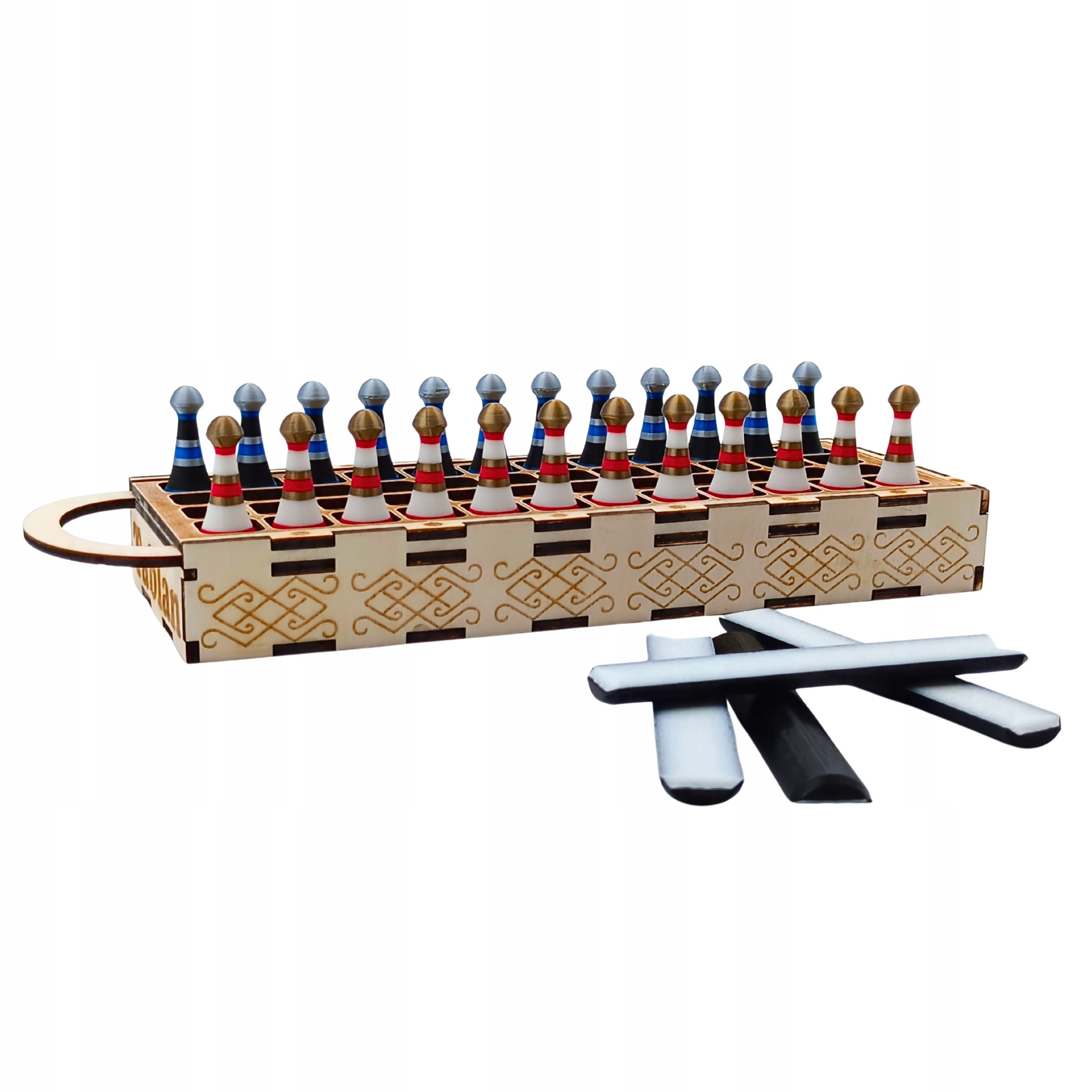 ✔️ 24 piony w dwóch kolorach (12 dla każdego gracza)